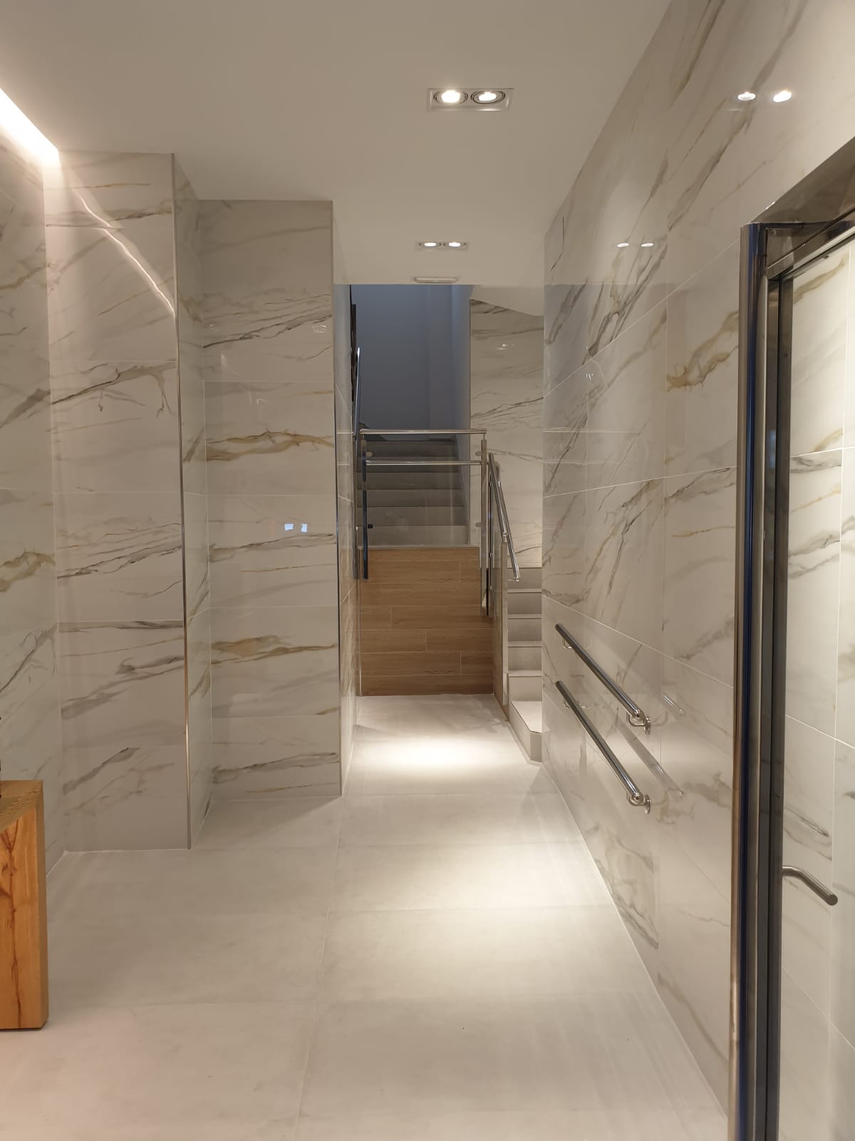 Instalación de ascensor a cota cero con sustitución del mismo, supresión de peldaños, escaleras y otras barreras arquitectónicas y reforma del portal proporcionando mayor luminosidad y seguridad.