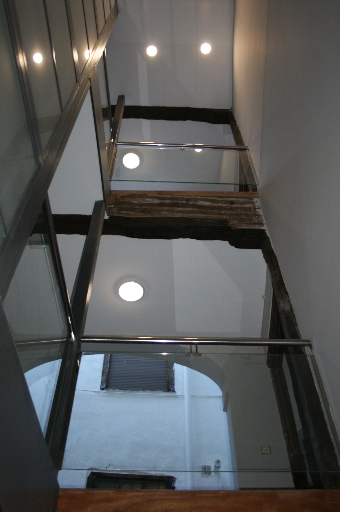 Instalación de ascensor en edificio histórico. A partir de dos inmuebles de vivienda colectiva con escalera propia se realiza una escalera y un ascensor de uso común, con lo que ambas dispondrán de acceso por escalera y ascensor, eliminando las barreras arquitectónicas en ambos inmuebles.